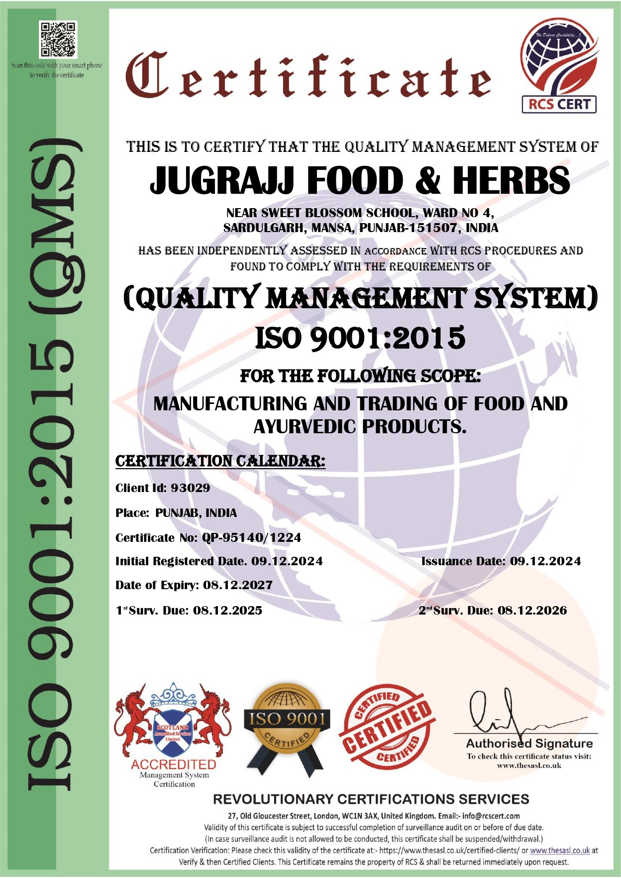 Trust is built through compliance and transparency. Jugrajjfoodnherbs proudly holds certifications that validate our excellence:
